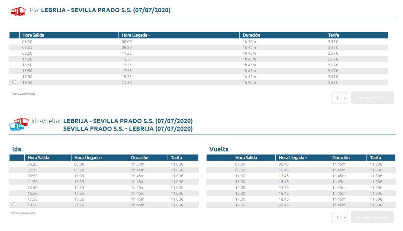Cundo puedo comprar billetes de autobs baratos al mejor precio de Sanlcar de Barrameda a Sevilla. Desde la estacin de Jerez tambin parten lneas de la empresa Linesur hacia Sanlcar de Barrameda. 15 y el ltimo autobs del da sale hacia Sevilla a las 18.